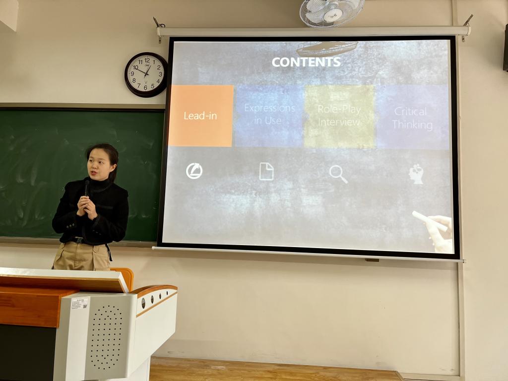 參賽老師選取本學(xué)期所帶科目進(jìn)行比賽,其中包括綜合英語、英語聽力、英語口語、英語閱讀、英語寫作以及大學(xué)英語,涵蓋了英語專業(yè)的主干課程。經(jīng)過激烈的角逐,最終李可老師脫穎而出,將代表英語教研室參加校級(jí)比賽。