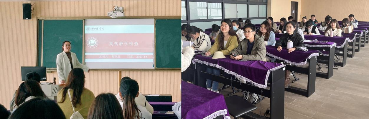 在教案方面,她首先指出問題主要集中在授課時間的填寫上,授課時間應按照學校要求將每個教學班的時間都寫上;其次,將教案填寫的其它要求又給大家重申了一下,包括模板、授課順次、作業及后記等;最后,強調了教案的歸檔要求,包括封皮、說明頁、課程頁和正文,并要求大家把有關信息填寫完整。