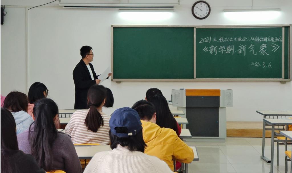 新學期如期而至,為了使同學們在新學期有一個良好的開端,確立新學期的目標和明確對未來的規劃,我校yl6809永利官網2021級數學與應用數學(2)班于2023年3月6日在二教322教室召開“新學期新氣象”的主題班會,班主任檀雷雷老師和2班全體學生參加會議。