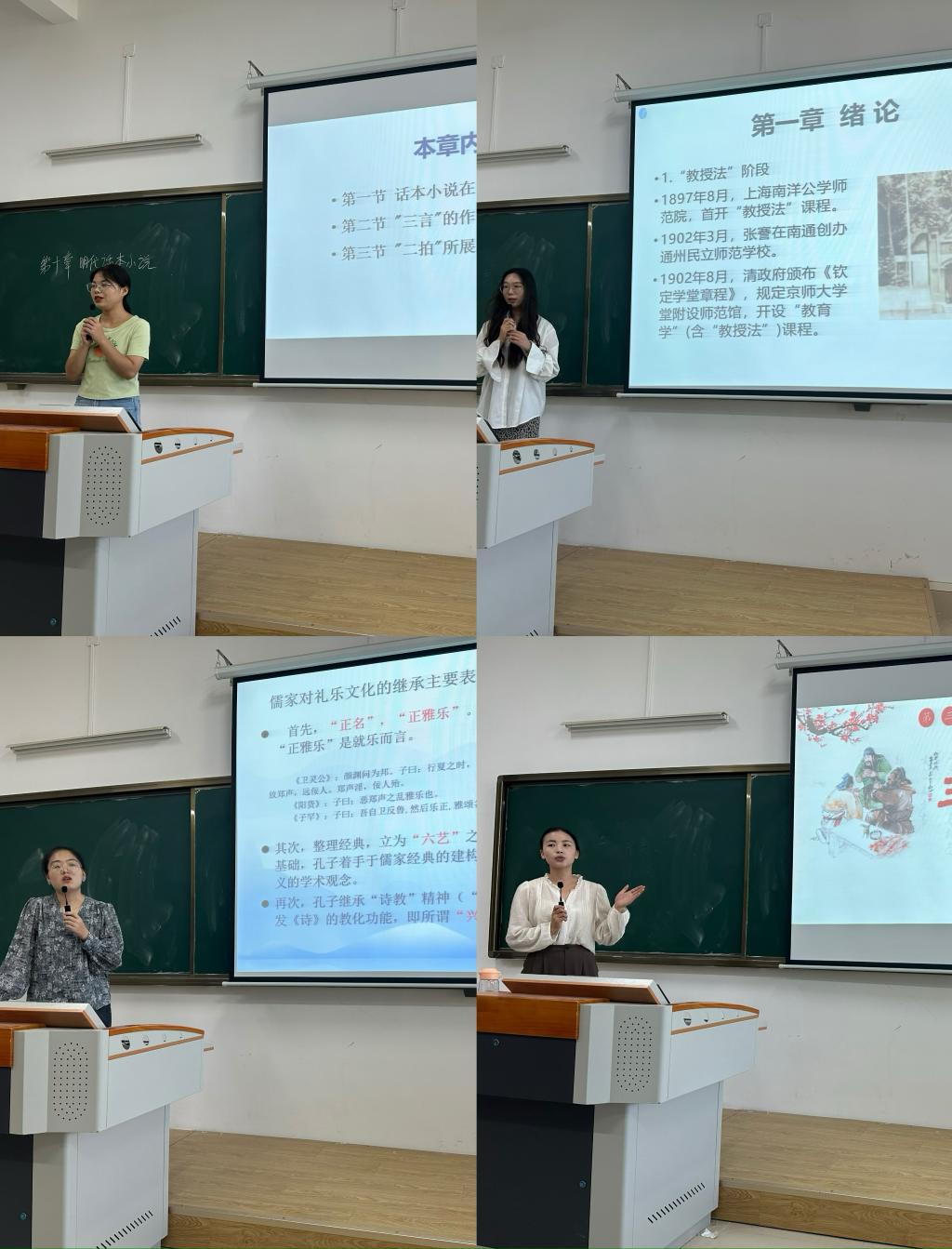漢語言文學教研室13名新教師進行了試講,參加試講的老師們準備充分,內容嚴謹、教態自然、表述清晰、節奏連貫,展現了新教師良好的專業知識素養和靈活多樣的教學方法。
