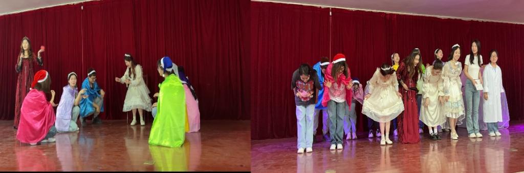演出由任莊幼兒園小朋友和理工學(xué)院的21級普本同學(xué)交叉呈現(xiàn),21級普本同學(xué)共準(zhǔn)備了三個精彩的節(jié)目。第一組同學(xué)們在大一班手勢舞《美好的三年時光》和大二班合唱《最美的花季》后,呈現(xiàn)了故事劇《白雪公主》,其生動鮮活的演繹瞬間將現(xiàn)場觀眾帶入如夢似幻的童話之境,一下就牢牢的吸引住了臺下的小朋友;