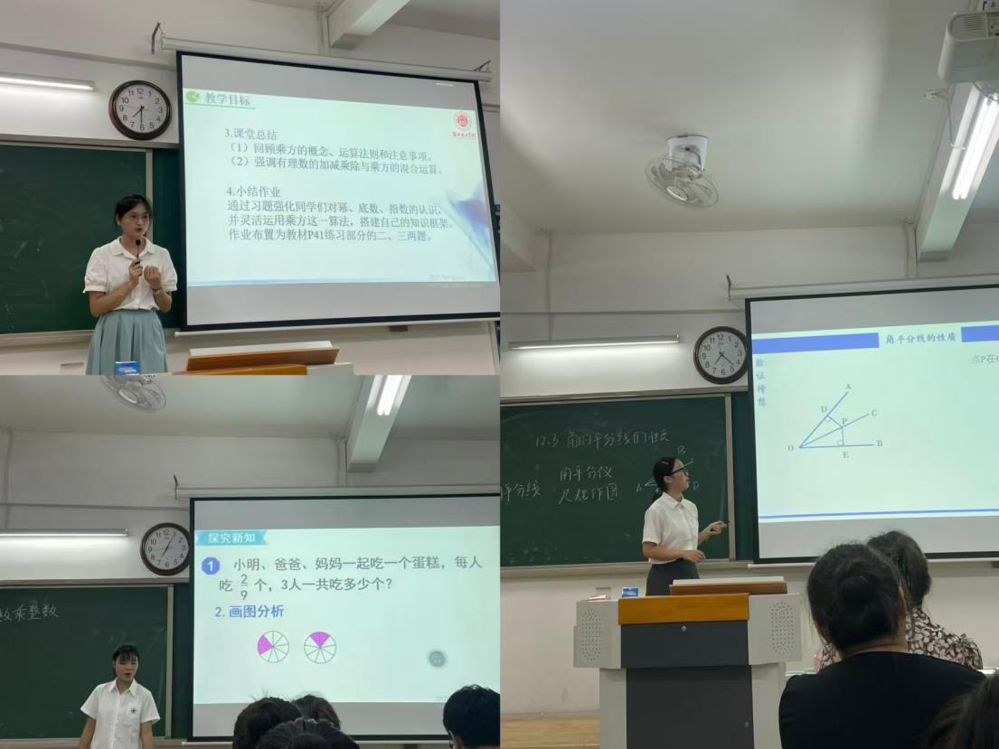此次師范生技能大賽分為初賽和決賽兩個階段。近40名學生參與中小學數學組比賽,經過初賽的激烈角逐,最終8名選手脫穎而出,齊聚決賽現場,其中小學組2名,中學組6名。本次決賽采用5分鐘說課和10分鐘模擬課堂授課相結合的考核方式。在本次比賽中,選手們活用師范技能,用實際行動展現了數學學子風采。他(她)們合理設計課程結構,巧妙運用數學原理,以生動的語言、形象的演示、精美的課件、工整的板書和有趣的教學案例向評委老師們充分展現了數學學科的獨特魅力,讓現場觀眾仿佛置身于一場場精彩的數學探險之旅。最后,評委團對所有學生進行綜合打分,評選出一等獎1名、二等獎2名共3名學生參加省級比賽!