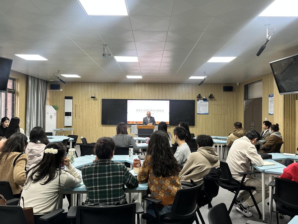 為進一步提升青年教師的教學(xué)水平,推動學(xué)院教學(xué)質(zhì)量穩(wěn)步提高,英語教研室于11月6日下午在一教210教室舉辦了銀齡專題報告會。此次報告會特邀英語專業(yè)銀齡教師唐國卿副教授擔(dān)任主講嘉賓,英語教研室全體青年教師積極參與,共同聆聽資深教師的教學(xué)經(jīng)驗和智慧分享。
