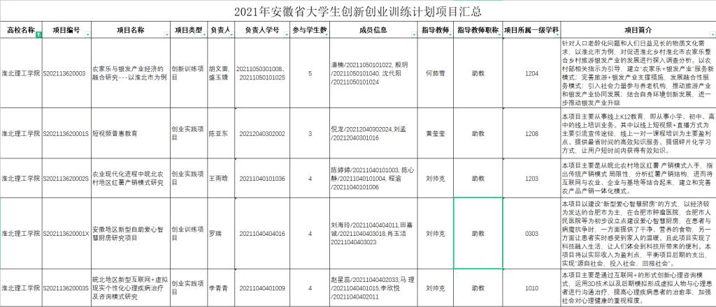 2021年安徽省大學生創新創業訓練計劃項目立項名單.xlsx