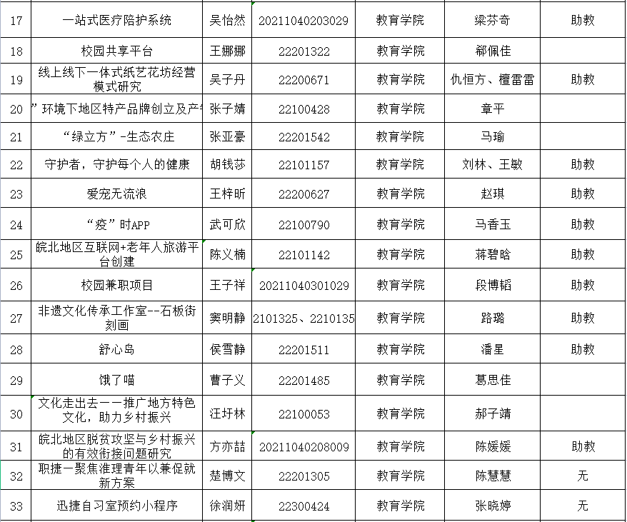 yl6809永利官網2022年安徽省大學生創新創業訓練計劃項目立項公示表.xlsx