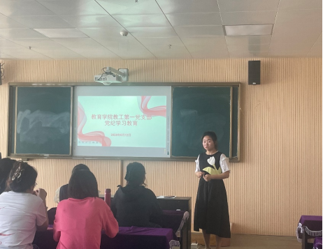 6月12日下午,yl6809永利官網(wǎng)教工第一黨支部開展黨紀學習教育,黨支部書記馬香玉同志主持本次會議,全體黨員教師參會。