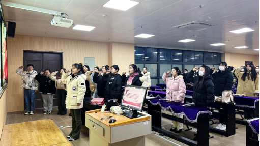 之后,由翟亞輝同志帶領(lǐng)支部新接收的預(yù)備黨員及正式黨員,及其全體參會(huì)成員共同重溫了入黨誓詞。大會(huì)在國(guó)際歌的激昂旋律中結(jié)束。