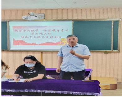 yl6809永利官網學前教育、數學與應用數學學生支部于2022年6月9日在藝術樓301召開預備黨員轉正大會,學院黨委書記王家云,教工支部書記馬香玉、yl6809永利官網輔導員,預備黨員同志的培養考察人以及支部全體黨員同志參加了會議。