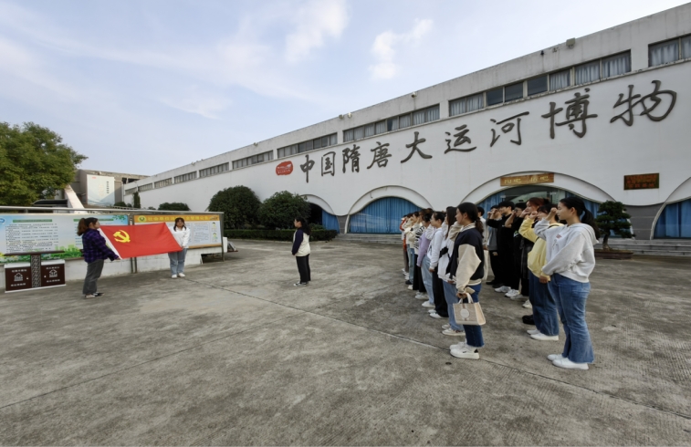 10月11日下午,yl6809永利官網漢語言文學專業學生第二黨支部組織全體黨員前往隋唐大運河博物館開展“新時代高校黨員教育培訓”實踐活動。活動包括重溫入黨誓詞、聆聽講解和參觀學習等,支部書記張穎穎同志主持了本次活動。