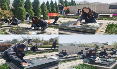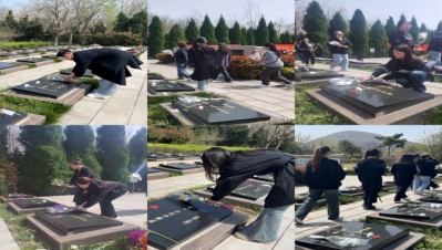 全體黨員同志在支部書記高偉老師的帶領下高舉右拳,面對鮮艷的黨旗重溫入黨誓詞,在烈士英魂前許下鄭重承諾,不忘初心,踔厲奮發,勇毅前行。隨后,全體黨員在宣誓結束后用心清理陵園內的垃圾,擦拭烈士墓碑上的塵土與雨漬,寄托了對先烈的哀思與崇敬。學生代表梁家豪同志倡議同學們要以先烈們英勇無畏、不怕犧牲的革命精神鼓舞斗志,以先烈們前仆后繼、矢志不渝的進取精神堅定信心,接力中華民族偉大復興的中國夢。