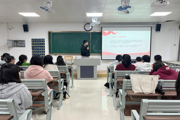 為深入開展學習貫徹習近平新時代中國特色社會主義思想主題教育,深化學生黨員對生產力發展規律的認識,領悟習近平經濟思想內涵。4月2日中午11:40,數學與應用數學專業學生黨支部在2教213教室開展新質生產力驅動專題黨課學習,本次黨課由支部書記孫虎老師主講,數學專業黨支部全體學生黨員聆聽。