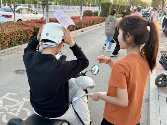 此次“一盔一帶”的安全守護(hù)行動(dòng)選擇在傍晚放學(xué)的高峰路段以及學(xué)校門(mén)口小吃街人潮涌動(dòng)的馬路邊開(kāi)展,參加安全守護(hù)行動(dòng)的老師攜帶宣傳海報(bào),積極督促交通道路上行駛摩托車(chē)、電動(dòng)自行車(chē)的騎行者在出發(fā)前及時(shí)佩戴好頭盔,提醒駕駛汽車(chē)的駕駛員提前系好安全帶,使大家培養(yǎng)良好的交通安全意識(shí),注重出行安全。