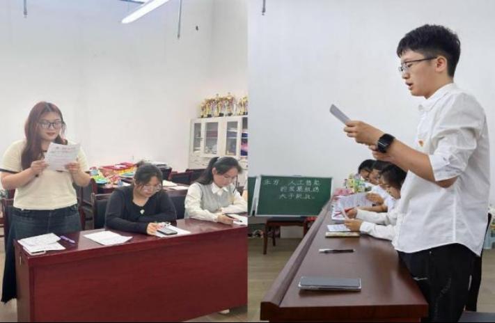 漢語言文學專業學生第一黨支部代表的正方觀點為“人工智能的發展機遇大于挑戰”,漢語言文學專業學生第二黨支部代表的反方觀點為“人工智能的發展挑戰大于機遇”。雙方各派五名辯手,由顧代飛同志主持,支部書記張穎穎、支部書記李應華擔任評委。