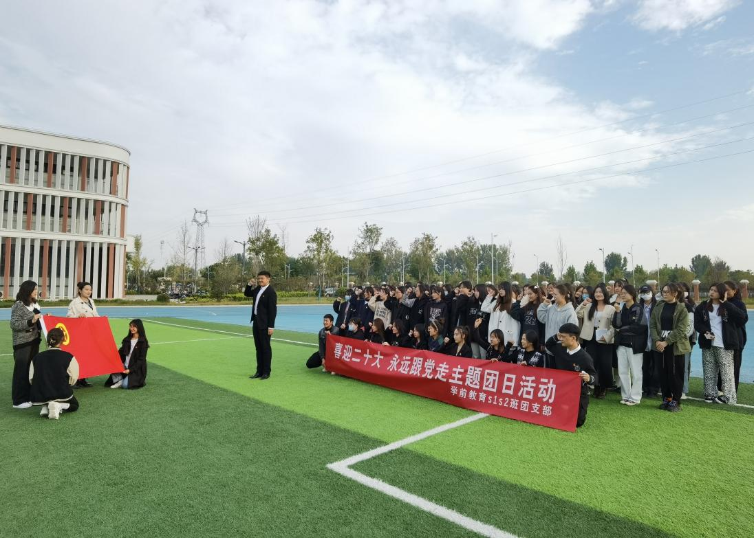 2022級學前教育專升本1、2班來到操場,在鮮艷的團旗下共同進行重溫入團誓詞。2022級學前教育專升本2班團支部書記徐雪寒同學在發言中表示:“要以此次學習為契機用積極向上的精神面貌,迎接黨的二十大的順利召開”。