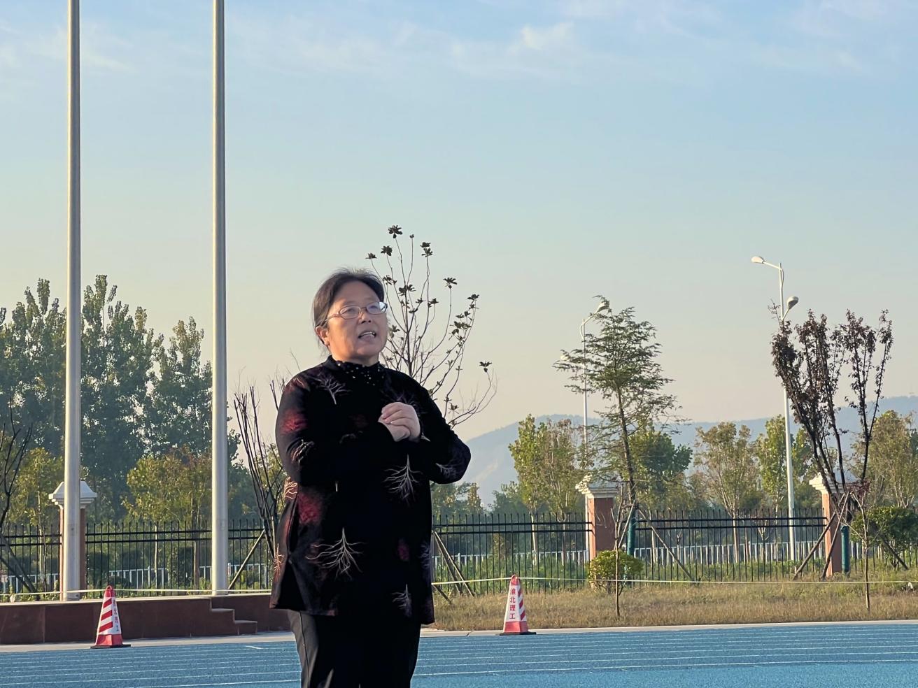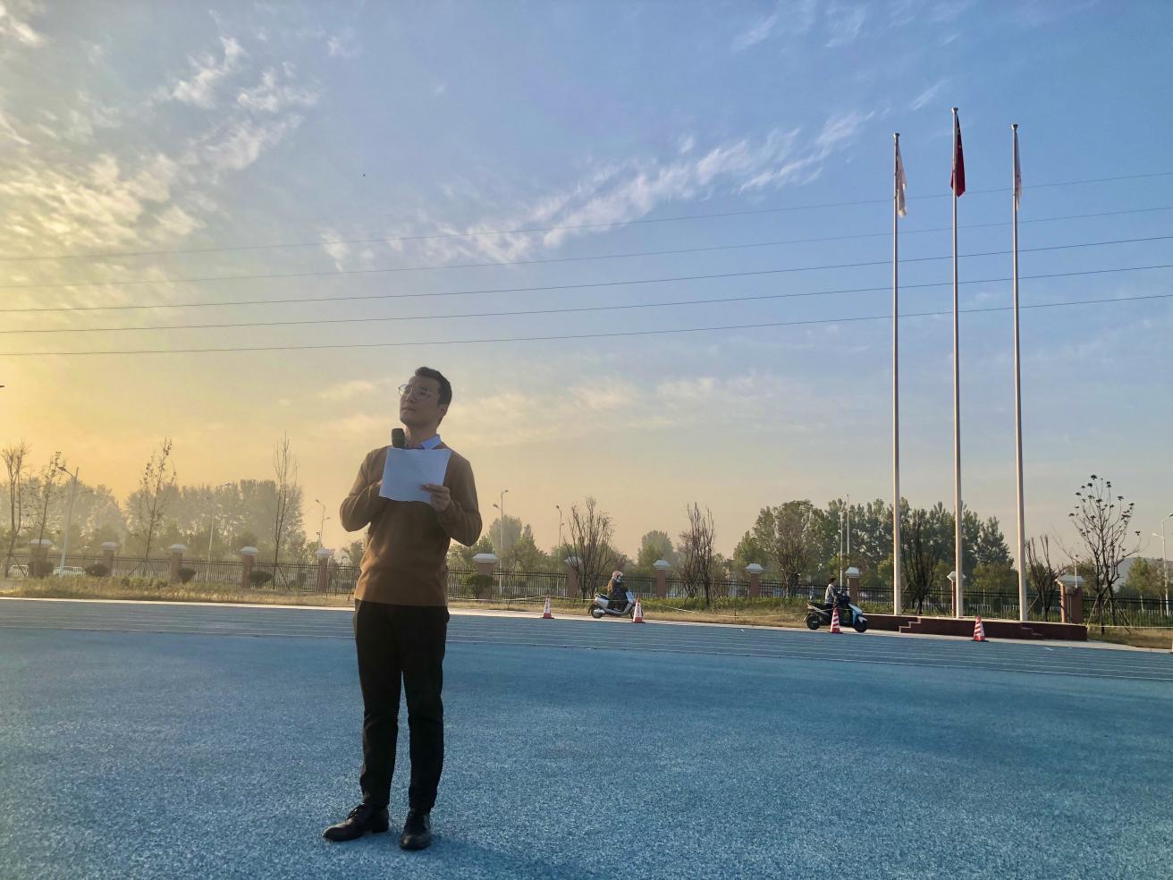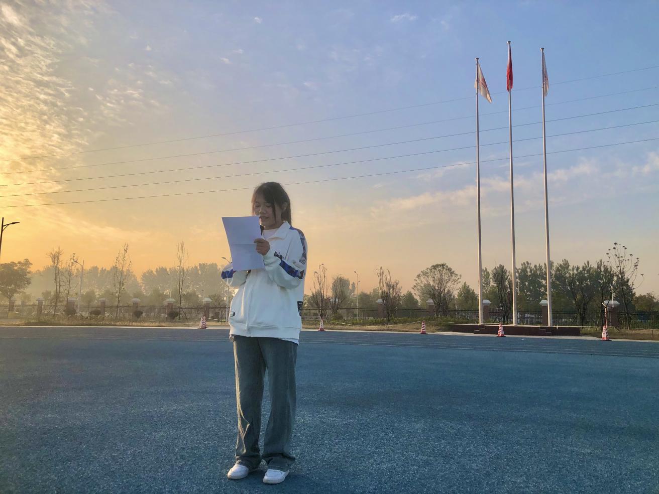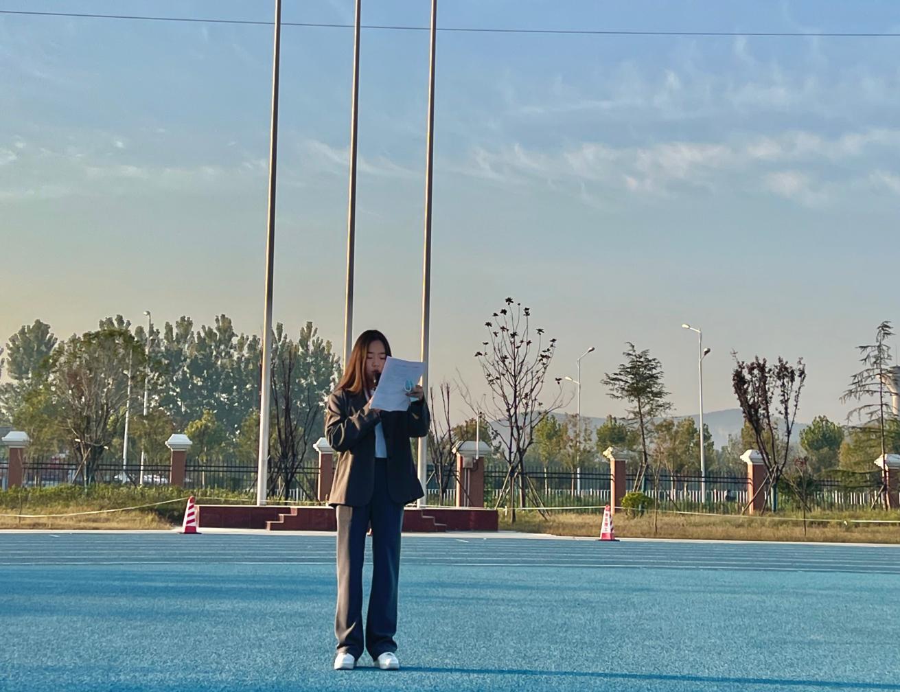 升旗完畢,新生專升本學生王燦作為學生代表發(fā)言,她說正處在人生黃金時期的大學生應該珍惜時間,熱愛學習,努力成為社會主義的合格建設者和可靠接班人!讓青春在全面建設社會主義現(xiàn)代化國家的火熱實踐中綻放絢麗之花。