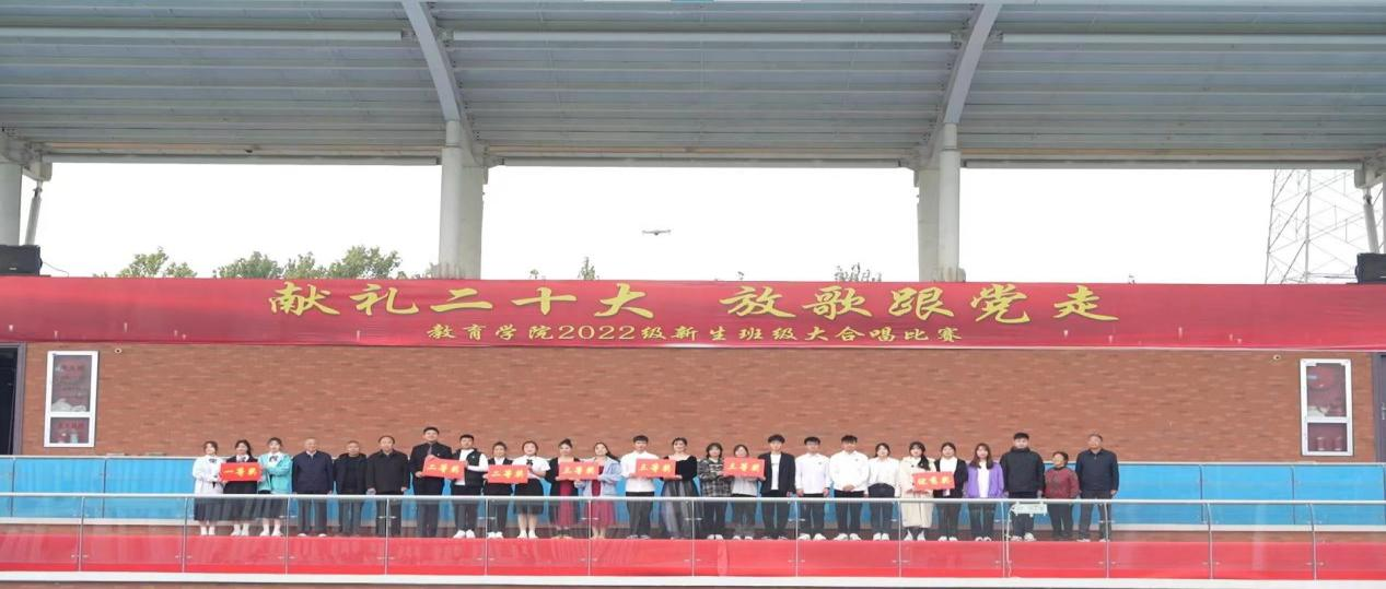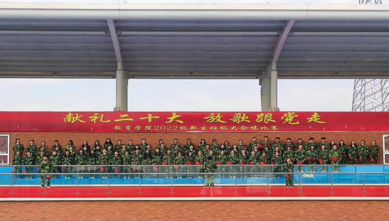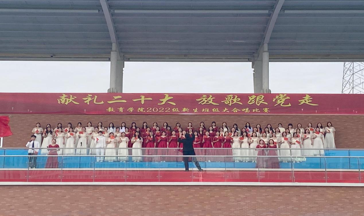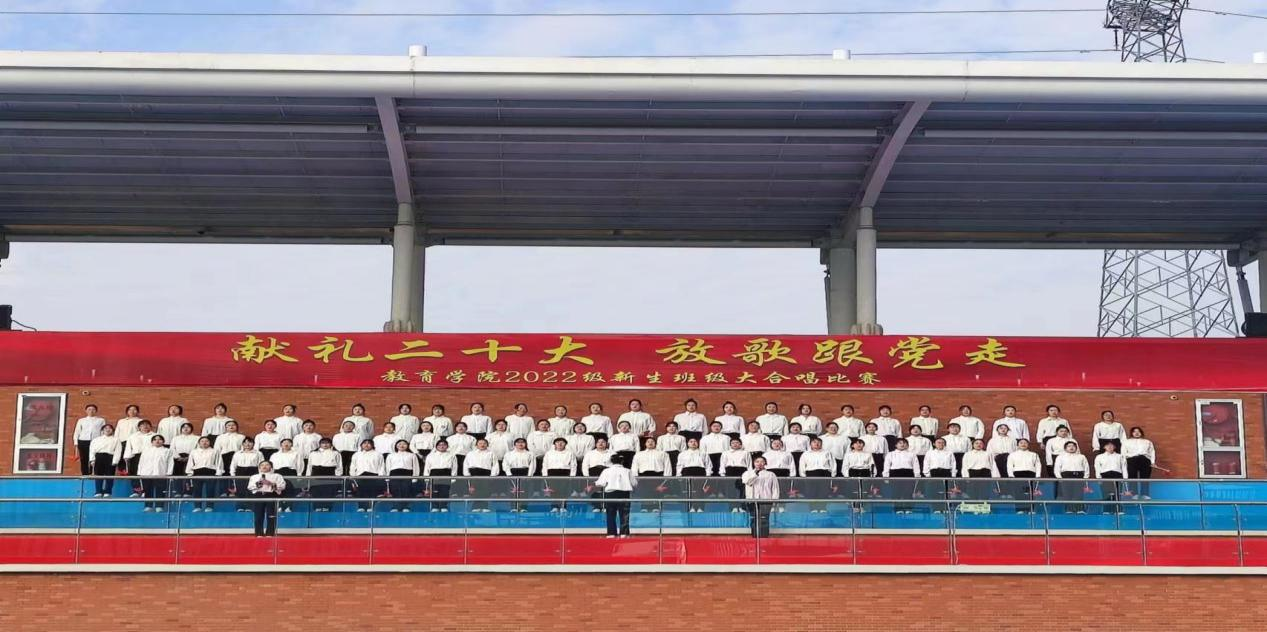在全國上下認真學習貫徹黨的二十大精神之際,yl6809永利官網為堅定青年大學生永遠跟黨走的理想和信念,引導學生賡續紅色血脈,厚植愛國情懷,于11月6日上午在校戶外操場舉辦了“獻禮二十大,放歌跟黨走”2022級新生班級大合唱比賽,蒞臨比賽現場的有學校副校長汪建利、教務處處長陳國平、后勤保衛處處長程堅、辦公室副主任陳杰、yl6809永利官網院長王家云、副院長孟向紅,校團委書記劉帥克、學生處老師、yl6809永利官網全體輔導員以及2022級49個班級的同學,學院2021級輔導員擔任了本次大合唱比賽的評委。