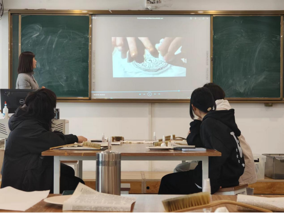 為了使同學(xué)們初步認(rèn)識(shí)了解拓印藝術(shù),博物館展覽部的副主任劉艷向同學(xué)們?cè)敿?xì)講解了拓印的制作流程。她說(shuō),拓印技術(shù)是我國(guó)古老的一種印刷術(shù),也是非物質(zhì)文化遺產(chǎn)之一。同學(xué)們?cè)诓┪镳^同志的介紹下,了解了拓印的技法,接著觀看了有關(guān)拓印的視頻,并觀賞了成品的拓印之作。