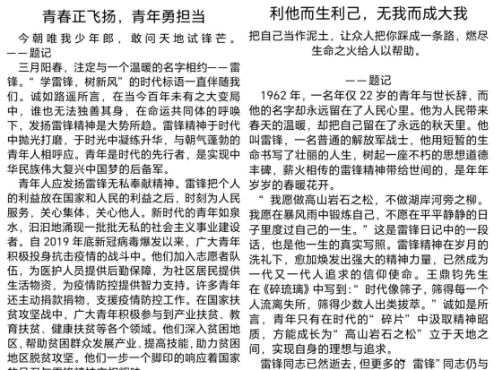 為進一步引導學生更好地了解雷鋒事跡、學習雷鋒品質、弘揚雷鋒精神,2月28日至3月22日,yl6809永利官網開展了以“弘揚雷鋒精神”為主題的系列文化活動。本次活動包括“學雷鋒”主題手抄報、主題征文以及觀影活動三項內容。