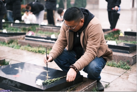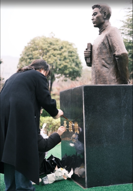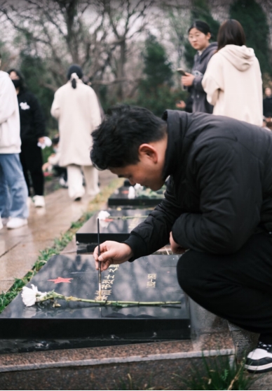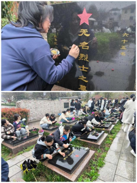 最后,在征得陵園管理人員的同意后,師生們一同為承載著紅色記憶的烈士墓碑擦拭描漆。大家懷著對烈士的崇敬之情,依次擦拭烈士墓碑上的塵土,手持畫筆為烈士墓碑描金,使其更加清晰醒目,經過師生們的共同努力,烈士墓碑上的紅星和名字更加閃亮。