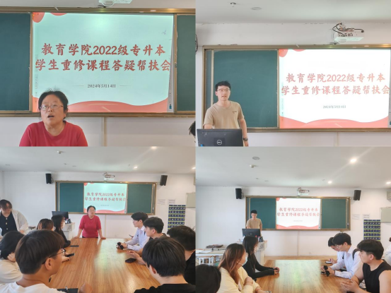 為做好2022級專升本學(xué)生重修課學(xué)習(xí)心理建設(shè),引導(dǎo)學(xué)生理性對待重修,力促學(xué)生順利完成學(xué)業(yè)。2024年5月14日中午,yl6809永利官網(wǎng)在藝術(shù)樓208教室組織了“2022級專升本學(xué)生重修課程答疑幫扶”活動,學(xué)院副書記孟向紅、院長助理米玉、團總支副書記許海濤、各專業(yè)教研室主任(副主任)及相關(guān)課任老師參加了幫扶答疑活動。