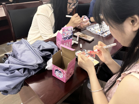 活動開始,工作人員介紹活動內容:同學們需要在各自的風鈴上繪畫創作,最后將創作完成的風鈴掛在一樓大廳進行展示。隨后,同學們有序入座,開始了自己的DIY創作。大家拿出風鈴,紛紛發揮自己的想象力與創造力,將內心想法呈現在涂鴉之中,用心體會手繪的快樂。