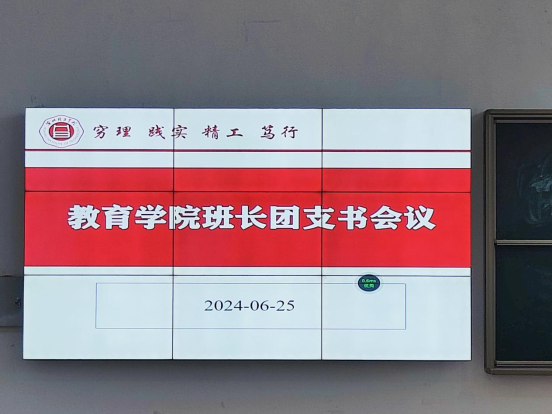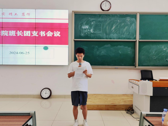 會上,許海濤老師對各班級班長、團支書本學期工作情況進行了總結,他肯定了大家在班級活動組織、班級管理等方面所做的工作,對大家的付出與努力表示感謝。他強調,班長、團支書要當好輔導員老師的助手,在班級要充分發揮模范引領作用,要善于觀察身邊同學的信息動態,在注重班集體進步的同時也要及時解決問題與矛盾。接著,他對“2024年暑期大學生三下鄉社會實踐活動”進行了布置,并提出了要求:一是要有突出的主題思想和明確的戰略部署;二是要嚴格管理,確保安全;三是要加強指導,提高質量。希望同學們在社會實踐中不斷增強責任感和使命感,砥礪奮進,提升自我。