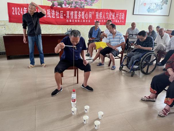 此外,志愿者們還精心組織了剪紙、“運球迷宮”“紙杯疊疊樂”和“投壺”等一系列趣味游戲。在活動室里,大家歡聲笑語不斷,老人們和志愿者們共同參與,共同競技,共同享受著這段愉快的時光。這些游戲不僅鍛煉了老人們的反應能力和協作精神,也為他們帶來了滿滿的歡樂。老人們積極反饋道:“這些游戲簡單又好玩,讓我們都感到非常開心,真的是意猶未盡。”