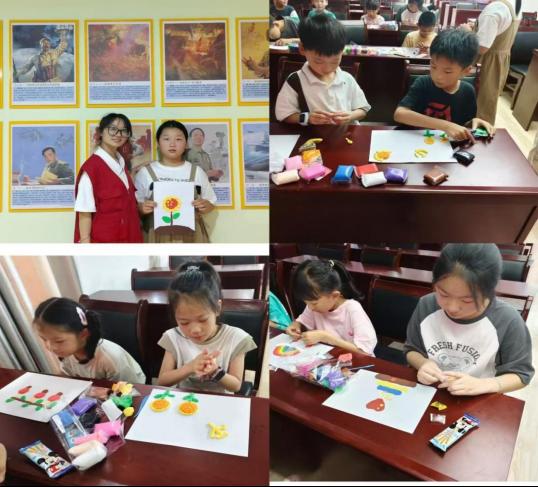 主題宣講結束后,實踐團隊志愿者們還指導社區兒童以紅色故事為元素進行黏土作品創作。一幅幅向日葵、一件件手捏的小作品不僅表現了小朋友們的想象力和創造力,更提升了孩子們的動手能力。