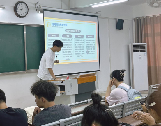 輔導員老師們從安全教育角度出發,對飲食、交通、消防、網絡等安全方面進行了細致講解,面對面指導學生如何應對突發性安全問題,強調在日常校園生活中要仔細甄別不良信息、謹防電信詐騙;注意寢室用水用電安全、保持整潔與通風,在細節上防患于未然。輔導員老師希望同學們能時刻緊繃安全之弦,牢固樹立“安全無小事”的意識,共同維護和諧穩定的校園環境。