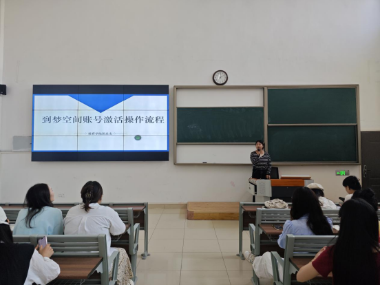 隨后,院學(xué)生會(huì)辦公室部門張蕊同學(xué)向大家介紹了到夢(mèng)空間第二課堂賬號(hào)激活操作流程。她詳細(xì)介紹了激活步驟,幫助班委熟悉操作方法,并強(qiáng)調(diào)了學(xué)會(huì)使用“到夢(mèng)空間”將有助于查找并參與校、院兩級(jí)活動(dòng),帶領(lǐng)班級(jí)積極主動(dòng)完成學(xué)分修訂。