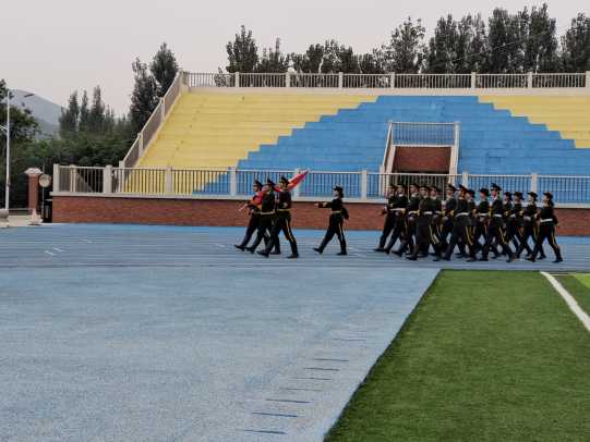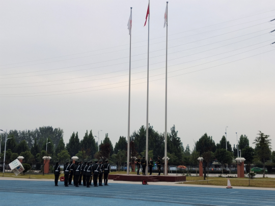 議程第二項,隨著激昂的音樂響起,英姿颯爽的國旗護衛隊邁著整齊有力的步伐,護送著鮮艷的五星紅旗走向升旗臺。莊嚴的國歌聲中,五星紅旗冉冉升起,師生們肅立注目,心中滿是對祖國的崇敬與熱愛。