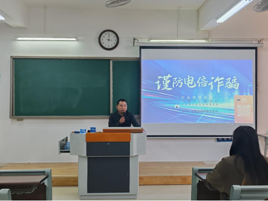 首先,孟春江律師從電信詐騙的概念、常見(jiàn)電信詐騙手段、電信詐騙典型案例、如何預(yù)防電信詐騙等方面生動(dòng)形象地普及了有關(guān)防范電信詐騙的法律知識(shí)。在談到電信詐騙的典型案例時(shí),特別強(qiáng)調(diào)了網(wǎng)絡(luò)購(gòu)物詐騙、網(wǎng)絡(luò)中獎(jiǎng)詐騙、冒充客服進(jìn)行詐騙等詐騙“陷阱”,他希望學(xué)生們能夠高度重視電信詐騙問(wèn)題,避免財(cái)產(chǎn)損失。