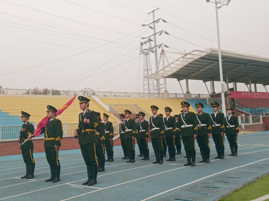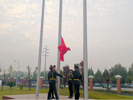 隨后,國旗護衛隊邁著整齊的步伐,護送著鮮艷的五星紅旗走向升旗臺。在激昂的國歌聲中,五星紅旗冉冉升起,全體師生肅立,向國旗行注目禮,表達對祖國的無限熱愛和敬意。